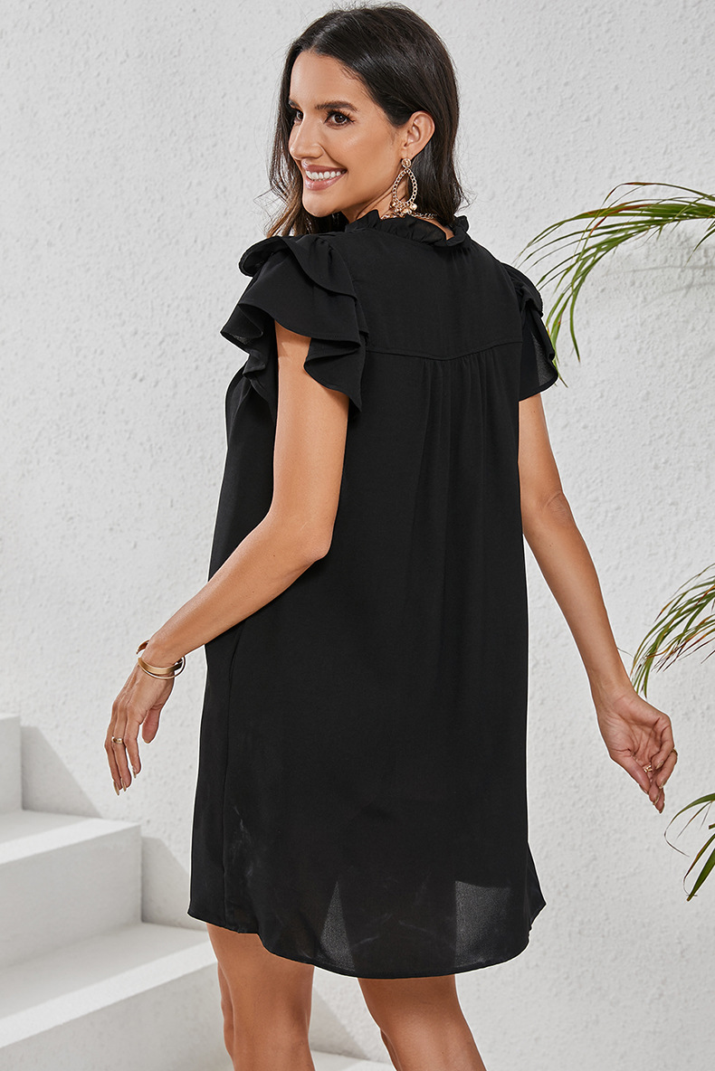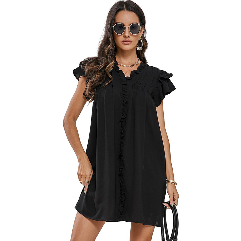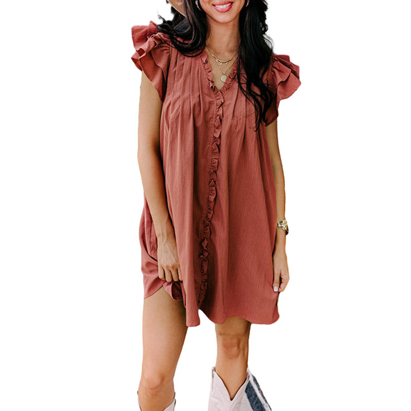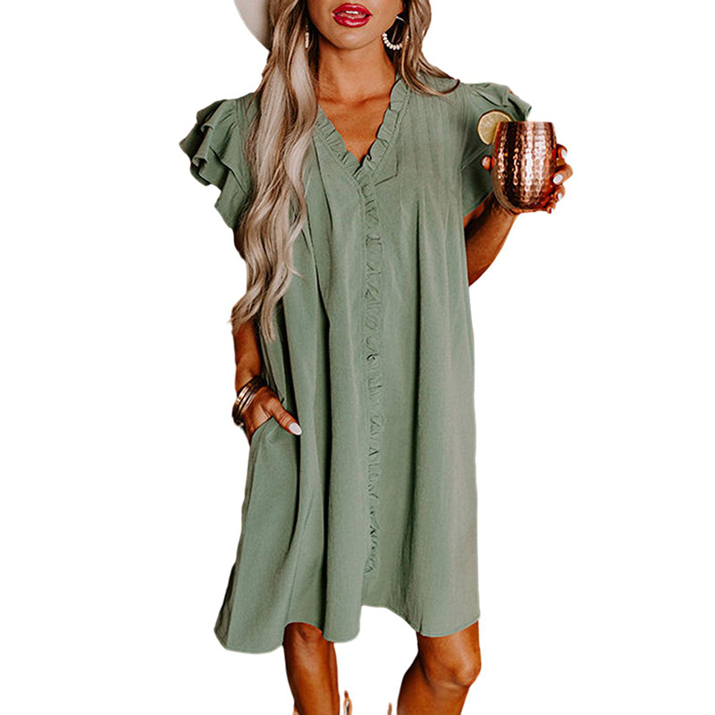 Women’s solid color V-neck straight loose dress