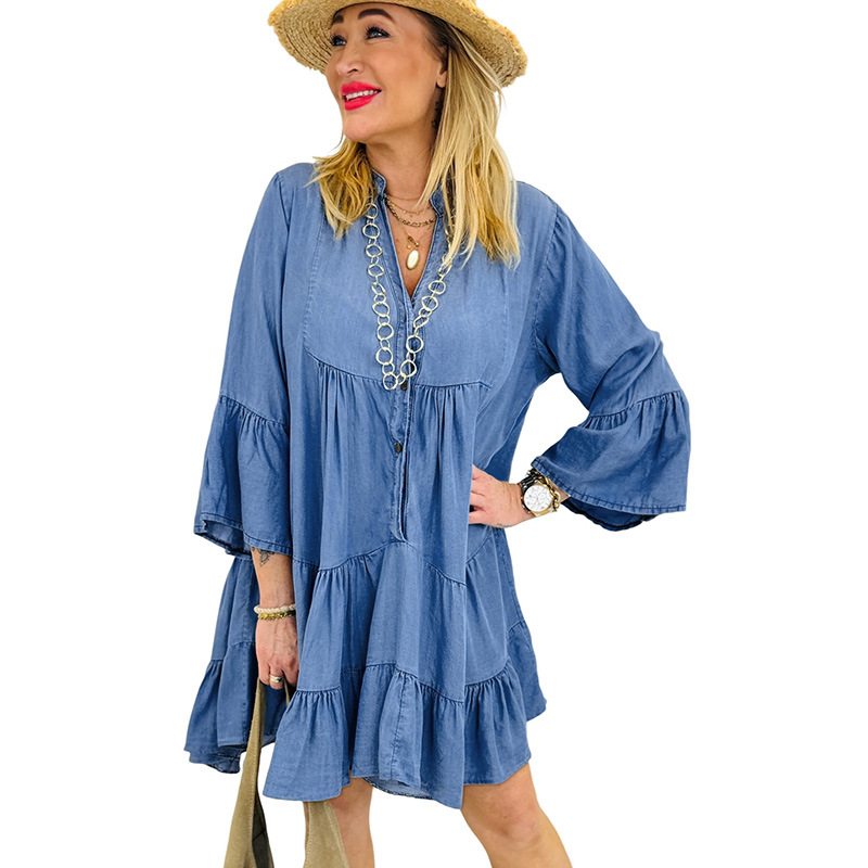 Be the first to review “Women’s V-neck pullover loose thin denim dress”